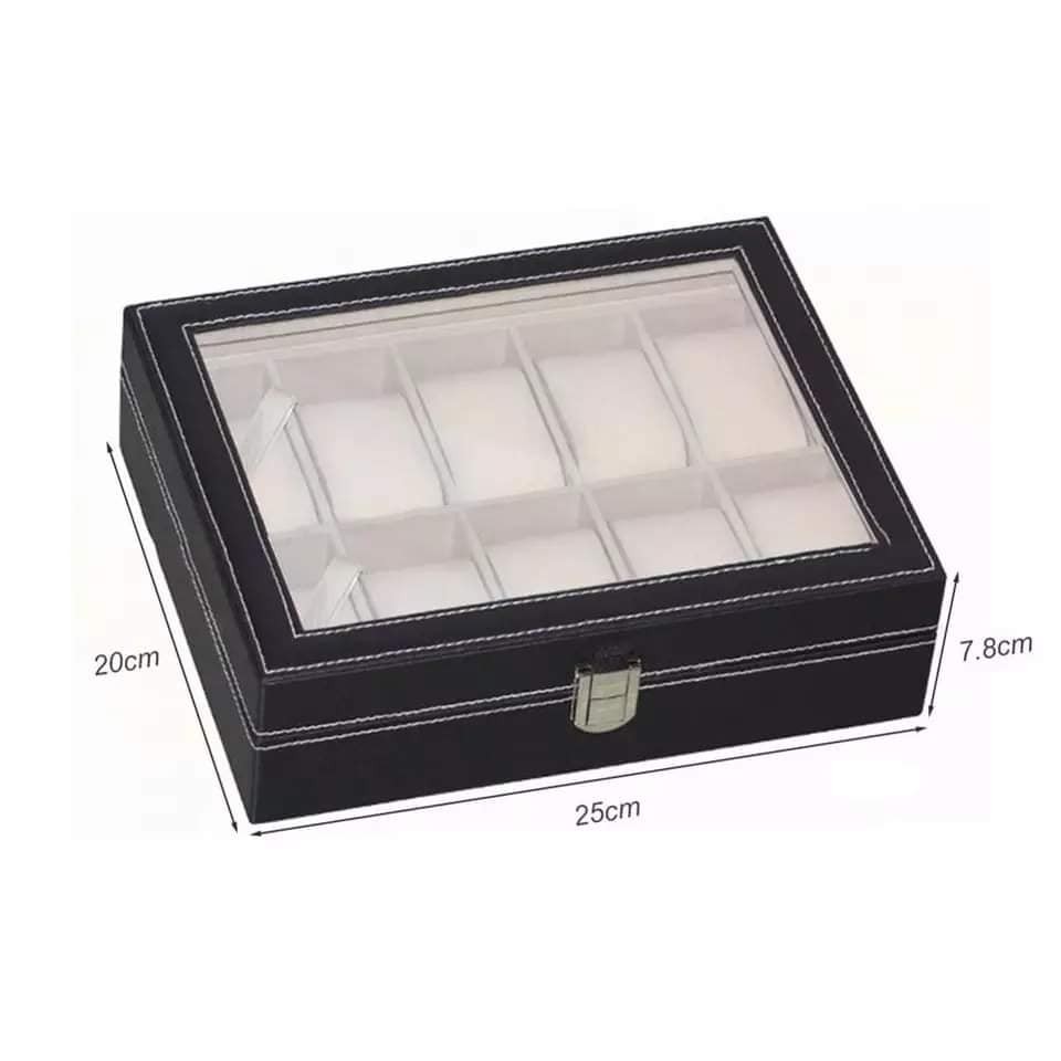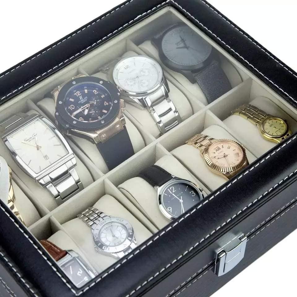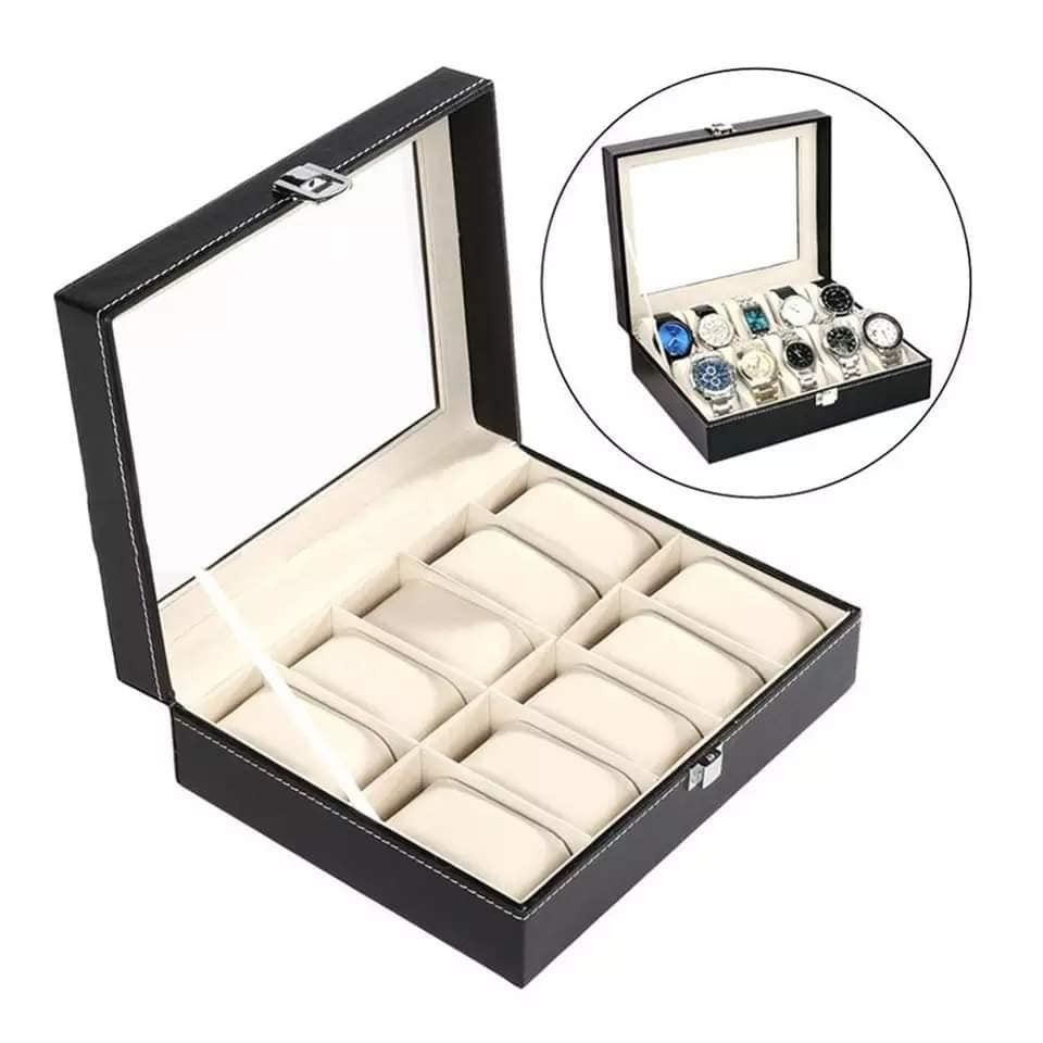 Faux Leather Wrist Watch Men Storage Box Clock/Watch Display Case Convenient Watch Organizer Storage Capacity : 10 & 12 Slot