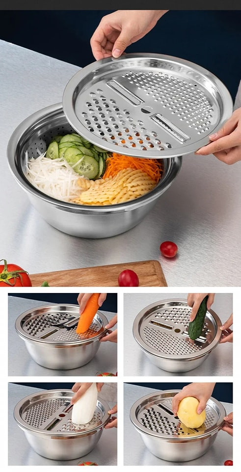 3-in-1 Multifunctional Kitchen Graters with Stainless Steel Drain Basin Vegetable Cutter Colander Vegetable Slicer Set