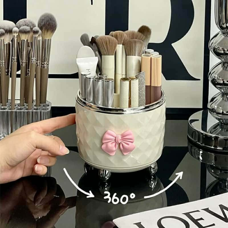 Features: 1. The makeup brush and finisher is made of PET, which is fashionable, beautiful and durable. 2.360 ° rotation make up organizer design: it can be used to store cosmetic brushes, lipstick, eyebrow pens, brushes, or pencils. 3. It is not easy to be damaged and cleaned; The round shape can be used as a gift for friends. Packing list: 1 * Makeup brushes organizer