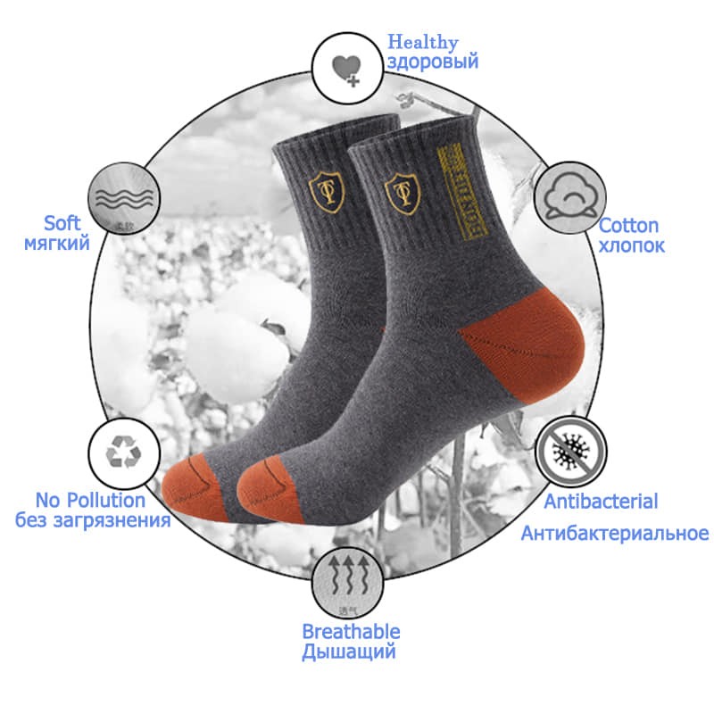 5 Pair Apring and Fall Mens Sports Socks