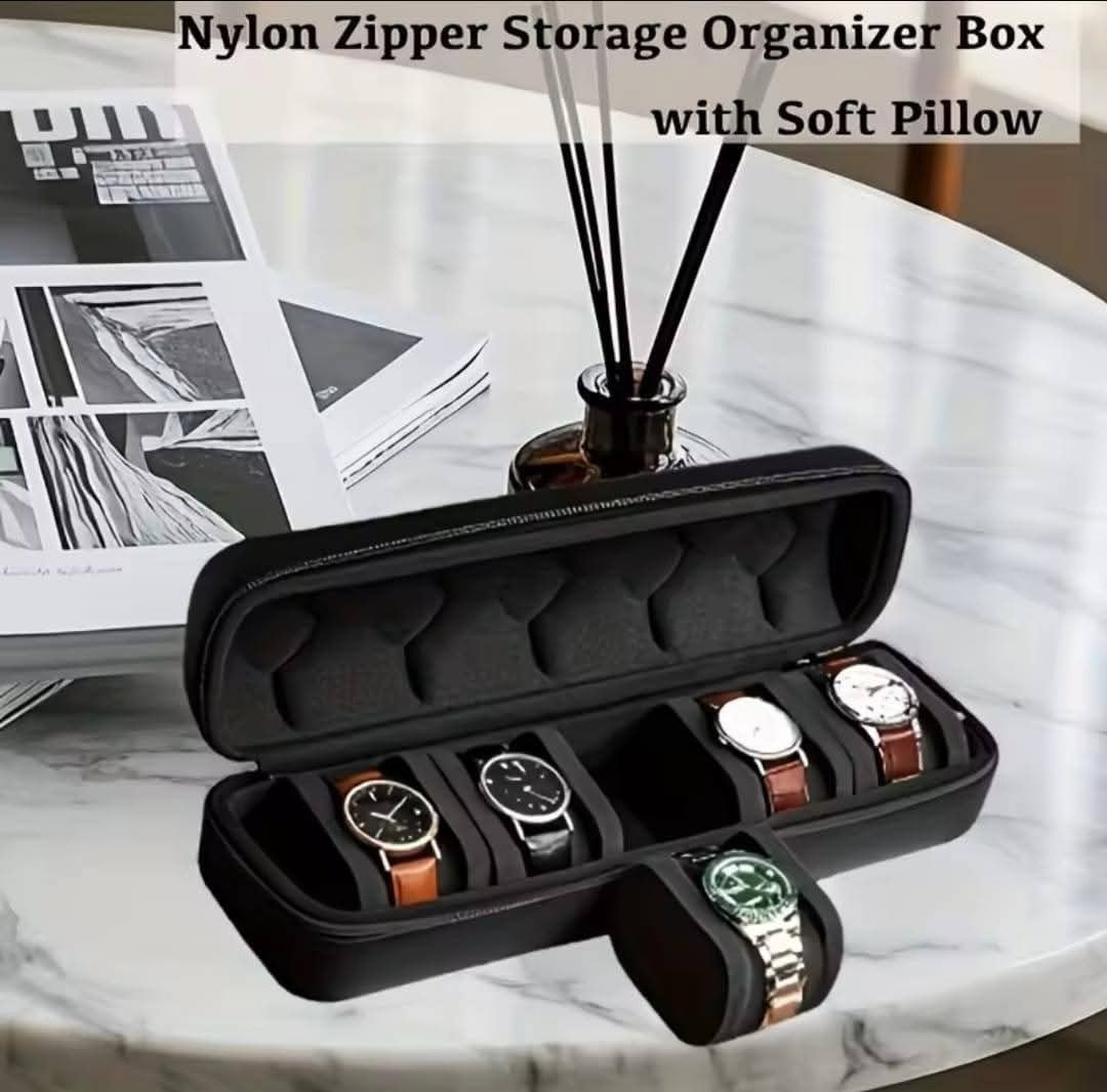5-Slot Watch Travel Box, Hard Shell with Soft Pillow & Handle, for Men Women