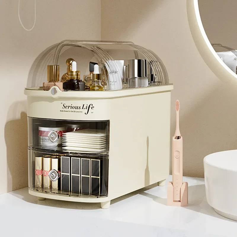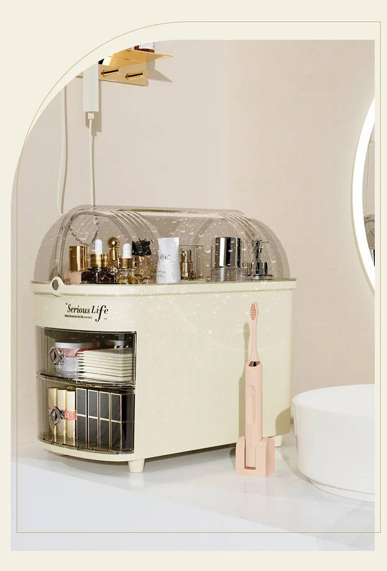 The crystal-clear cover keeps your cosmetics away from dust and water, keeping them tidy and clean.