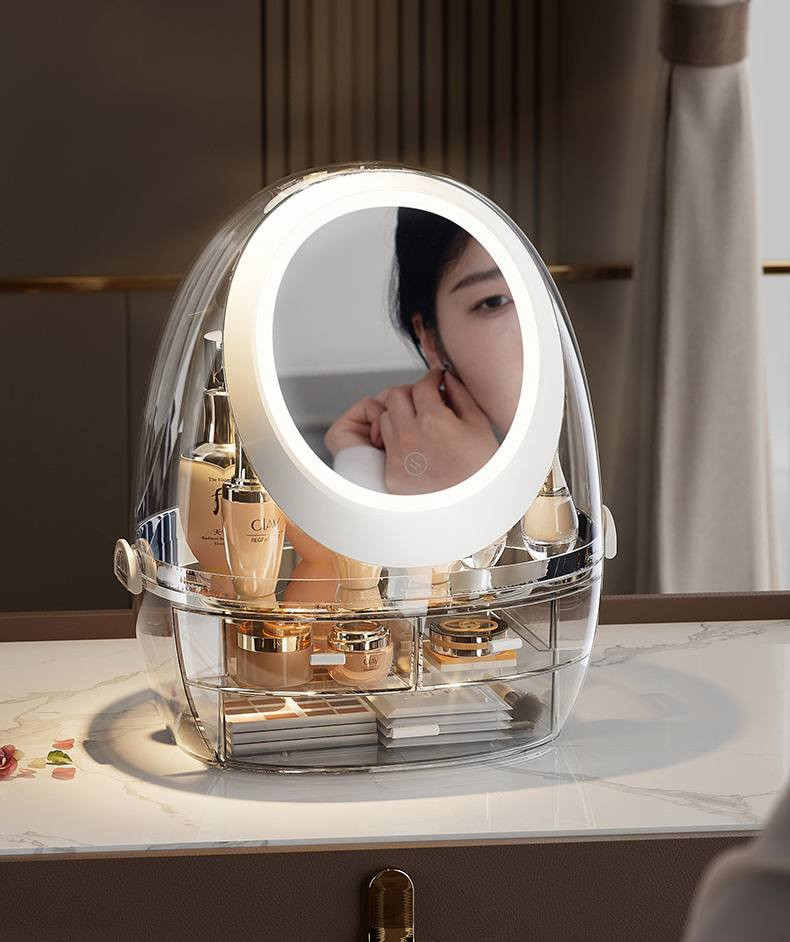 Luxury Cute Makeup Storage Box With LED Light and Mirror