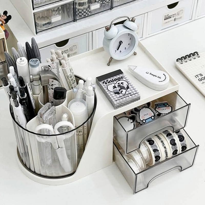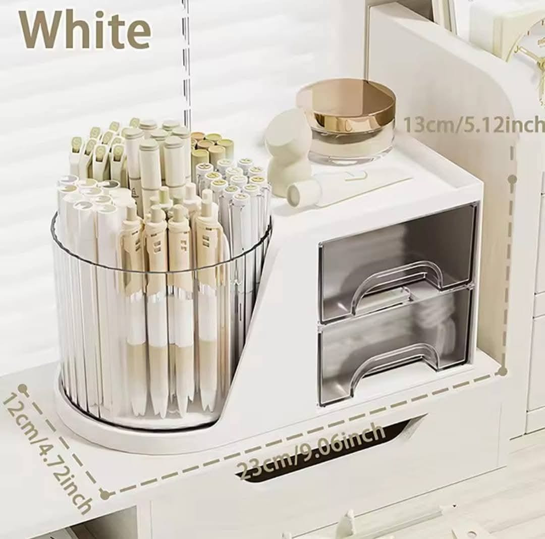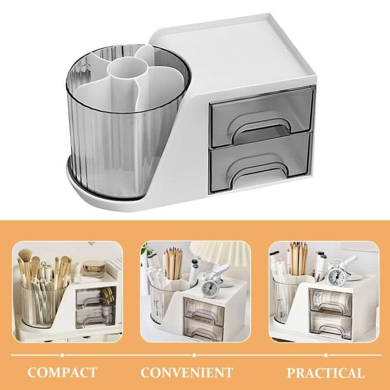 Enhance your desk organization with our versatile Rotating Pen Holder. This innovative desk accessory combines functionality with style, featuring a waterproof, rotatable design that ample compartmentalized storage. Ideal for organizing pens, pencils, makeup brushes, and even glasses, it boasts a large capacity to keep your neatly arranged. Perfect for home offices, classrooms, or makeup stations, this desk organizer ensures easy access to your daily while adding a touch of efficiency to any space.
