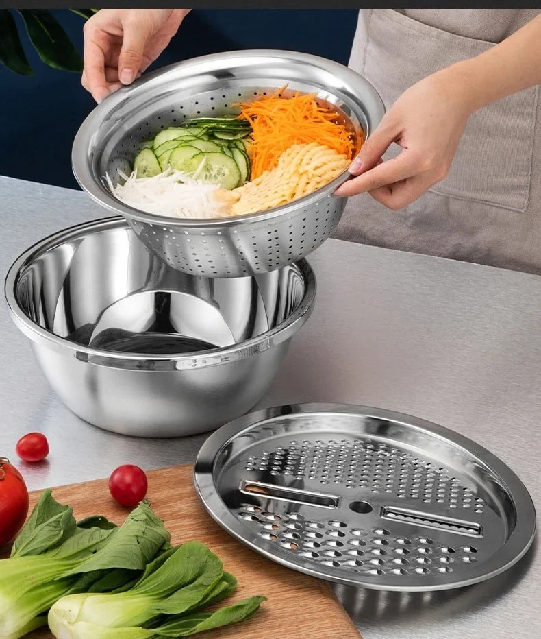 3-in-1 Multifunctional Kitchen Graters with Stainless Steel Drain Basin Vegetable Cutter Colander Vegetable Slicer Set