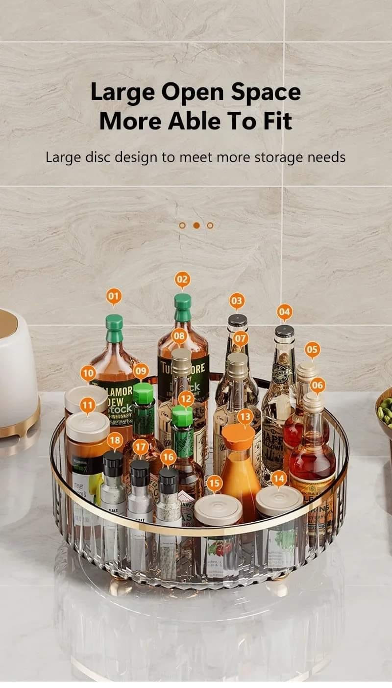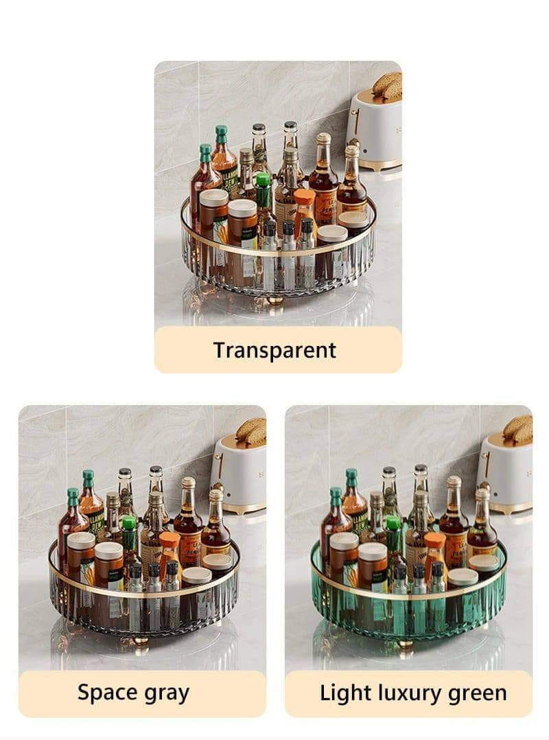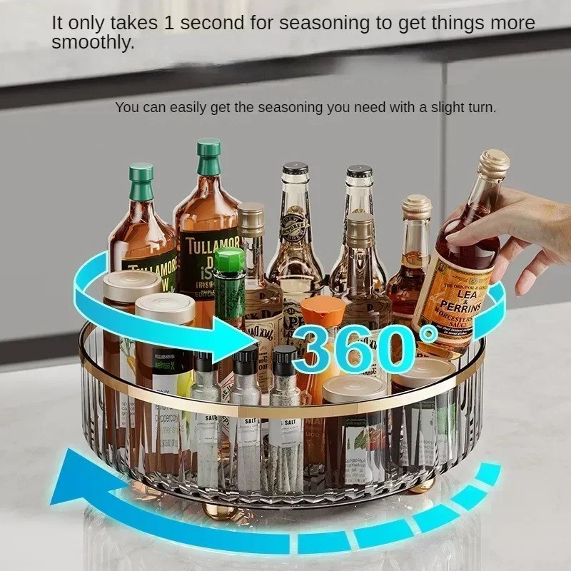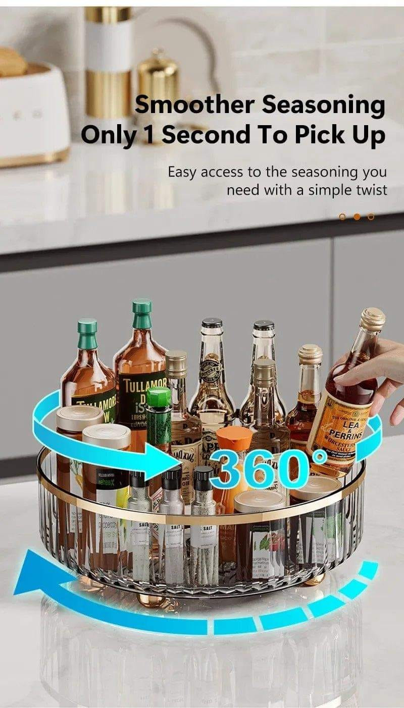 Easy sliding - Rotates 360°, the bottom is non-slip and stable, the rotation does not slip, allowing you to easily place flavoring bottles, fruits and vegetables, or cosmetics and skin care products at any Angle.