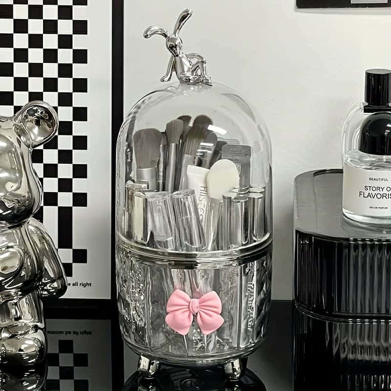 Features: 1. The makeup brush and finisher is made of PET, which is fashionable, beautiful and durable. 2.360 ° rotation make up organizer design: it can be used to store cosmetic brushes, lipstick, eyebrow pens, brushes, or pencils. 3. It is not easy to be damaged and cleaned; The round shape can be used as a gift for friends. Packing list: 1 * Makeup brushes organizer