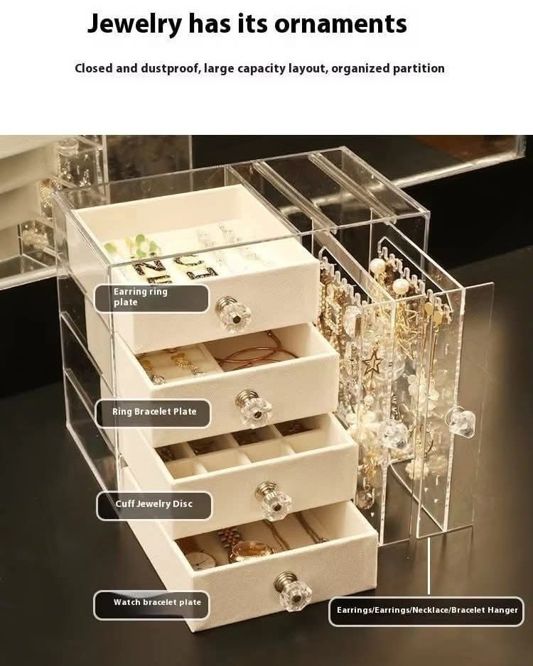 Clear Jewellery Display Organizer Earrings Ring Necklace Bracelet Stand Holder Acrylic Jewelry Storage Box with Velvet Drawer